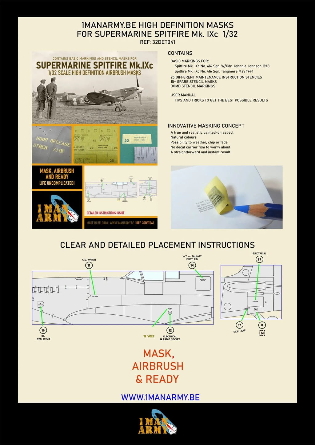 1 Man Army 32DET041 - 1:32 Supermarine Spitfire Mk IXc - Tamiya / Revell