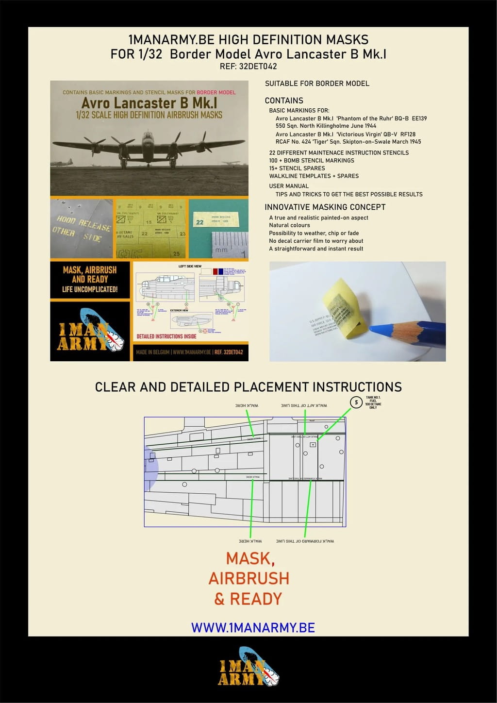 1 Man Army 32DET042 - 1:32 Avro Lancaster B Mk I - Border