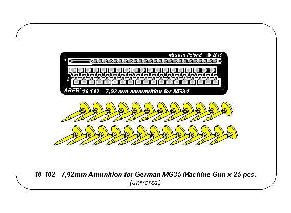 ABER 16102 - 1:16 7,92 mm Amunition for German MG34 Machine Gun x25 pcs