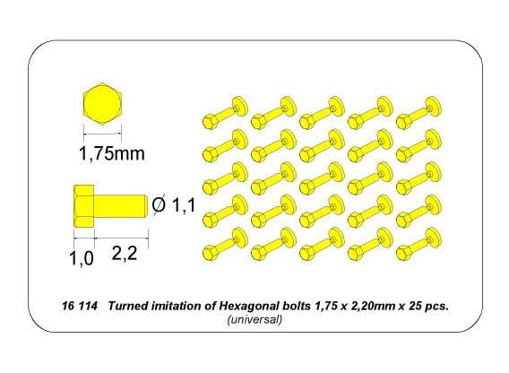ABER 16114 - 1:16 Turned Imitation of Hexagonal bolts 1,75 x 2,20 mm x 25 pcs