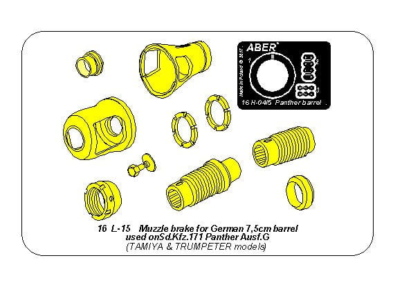 ABER 16L15 - 1:16 Muzzle brake for German 7,5cm barrel used on Panther Ausf.G