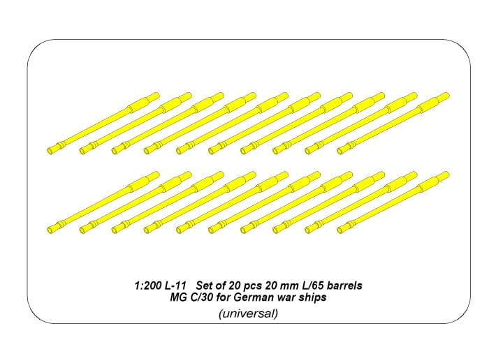 ABER 200L-11 - 1:200 Set of 20 pcs 20 mm L/65 barrels MG C/30 for German ships