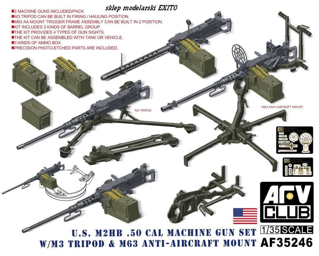 AFV CLUB 35246 - 1:35 U.S. M2HB .50 Cal Machine Gun Set W/M3 Tripod & M63 Anti-Aircraft Mount