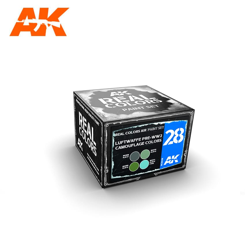 Zestaw farb akrylowych na bazie rozpuszczalników organicznych firmy AK Interactive seria Real Colors RCS028 Luftwaffe Pre-WW2 Camouflage Colors - kolory do samolotów niemieckich z okresu przed II w.ś.