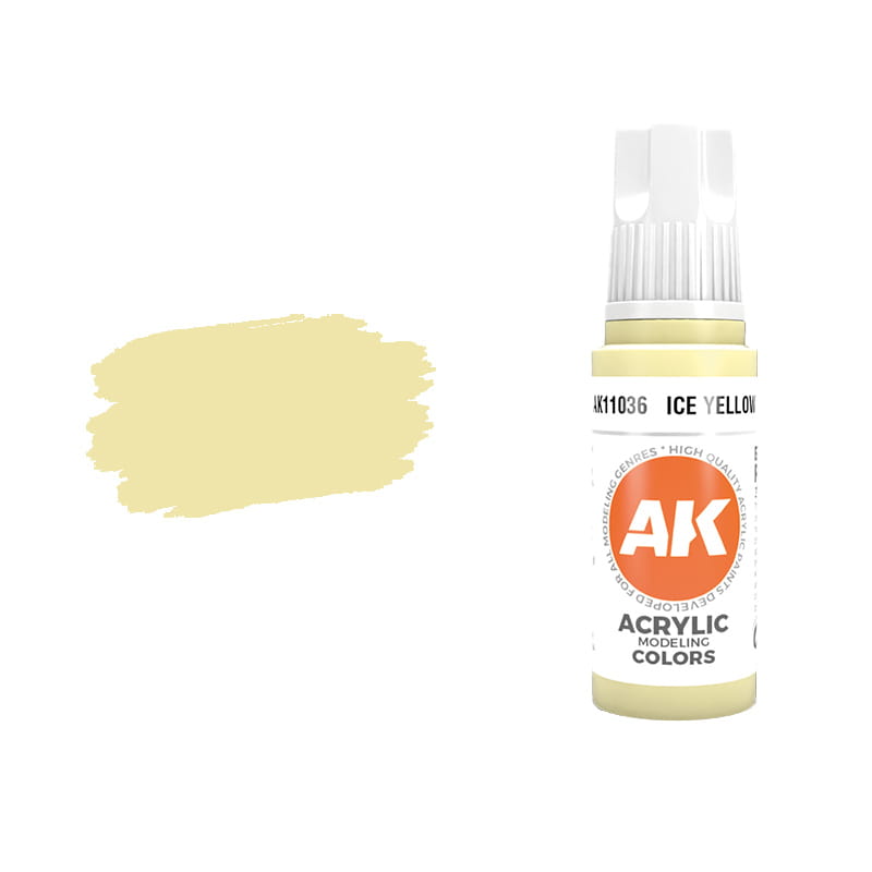 Farba akrylowa do modeli firmy AK Interactive seria 3 Gen - kolor 11036 Ice Yellow - Lodowo-żółty.