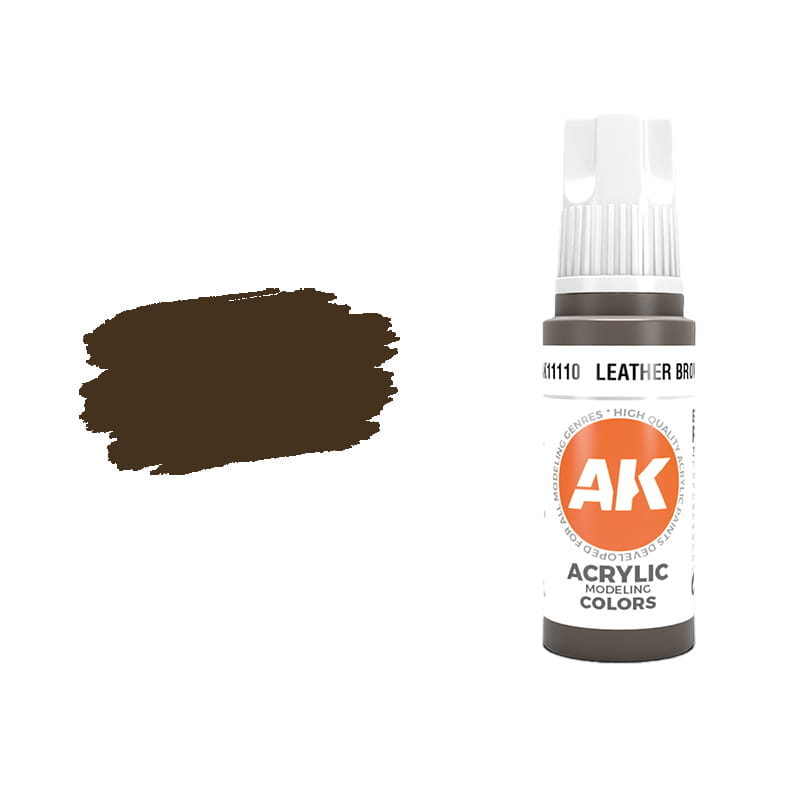 Farba akrylowa do modeli firmy AK Interactive seria 3 Gen - kolor 11110 Leather Brown - Brązowy skórzany.