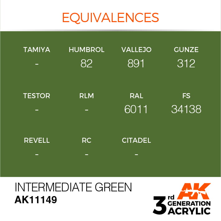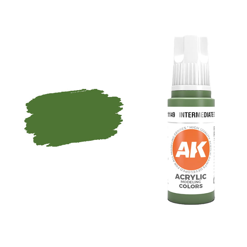 Farba akrylowa do modeli firmy AK Interactive seria 3 Gen - kolor 11149 Intermediate Green - Zielony.