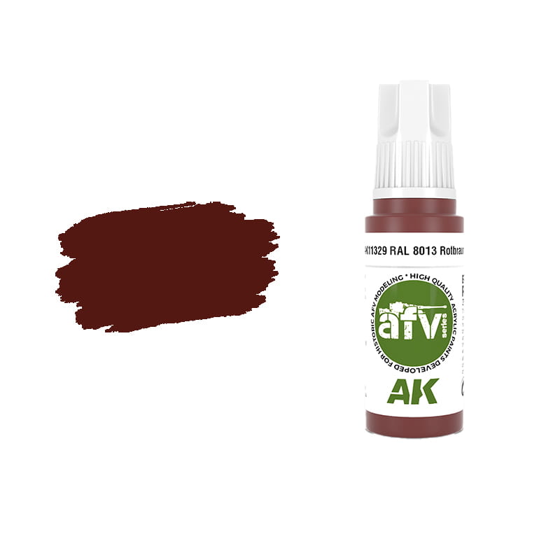 Farba akrylowa do modeli firmy AK Interactive seria 3 Gen - kolor 11329 RAL 8013 Rotbraun - Czerwono-brązowy.