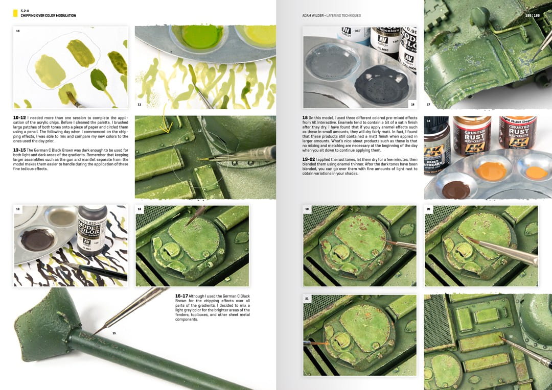 Poradnik dla modelarzy w którym uznany modelarz Adam Wilder poazuje sposoby wykonania detali i efektów pogodowych na pojazdach wojskowych za pomocą kolejnych etapów i warstw.