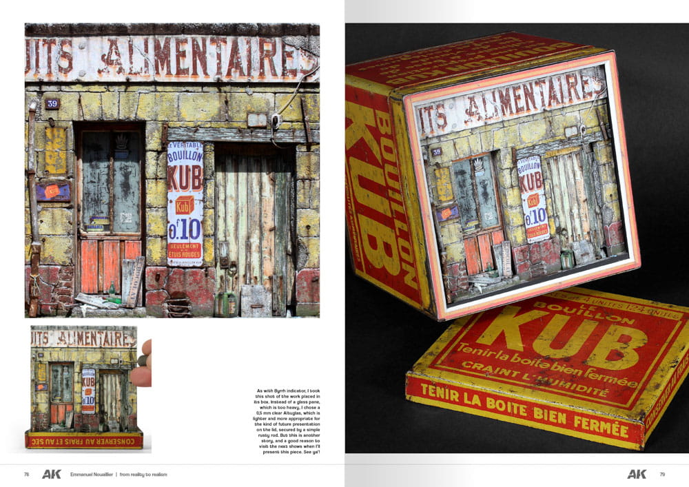 Emmanuel Nouaillier, francuski modelarz specjalizujący się w modelach fasad budynków i ultrarealistycznych konstrukcjach, zanurza nas w podróż przez miejskie budowle odtworzone w skali. Jest to nostalgiczne i poetyckie dzieło, które zachęca widza do podziwiania hobby z artystycznym tłem. Po ponad trzech dekadach fotografii dokumentalnej poświęconej tym "ponadczasowym fasadom", autor pokazuje, jak przenieść sfotografowaną atmosferę do winiet ze szczegółowymi procesami krok po kroku. Ta książka jest bardzo wyjątkowym dziełem. Ukazuje prace będącę w połowie drogi między modelarstwem a sztuką.