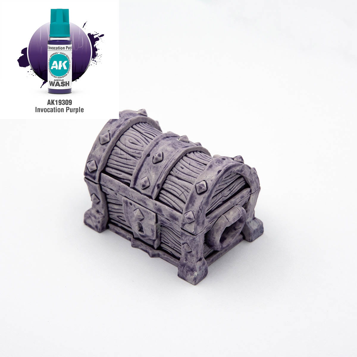AK Interactive 19309 Invocation Purple to wash akrylowy w chłodnym, fioletowym odcieniu, zaprojektowany do definiowania zagłębień, fałd i detali na powierzchniach w kolorach liliowych, purpurowych, fioletowych oraz magentowych.