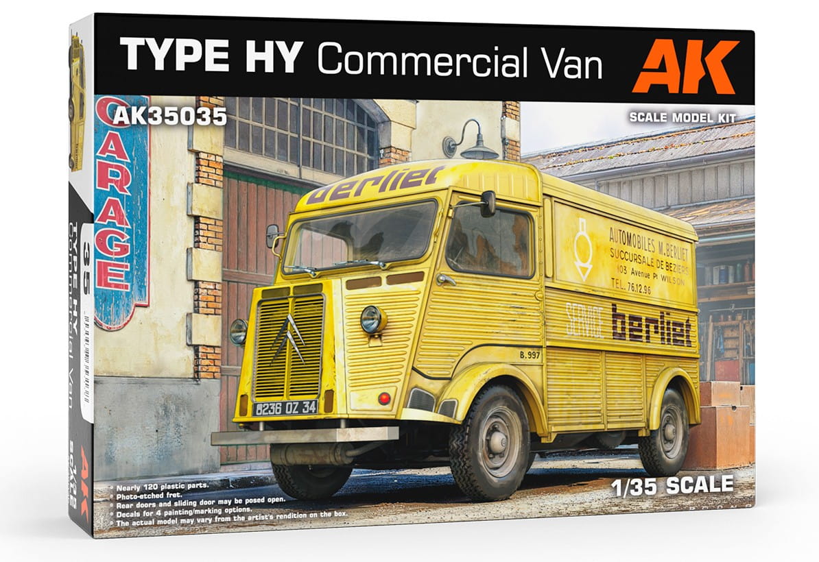 Zestaw AK Interactive 35035 pozwala zbudować szczegółowy model Citroëna Type HY – jednego z najbardziej rozpoznawalnych samochodów dostawczych produkowanych we Francji w latach 1947–1981. Charakterystyczna, falista blacha karoserii i prosta konstrukcja uczyniły go popularnym wśród rzemieślników, sklepów, służb technicznych oraz jako mobilny kiosk lub vana gastronomicznego.