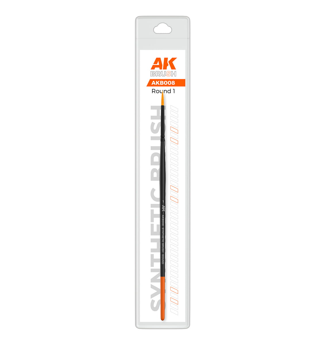 Rodzinę pędzli AK Effects & Details można rozpoznać po szarym wykończeniu uchwytu. Obejmuje ona specjalne pędzle o różnych kształtach. Dzięki miękkim i elastycznym włóknom syntetycznym idealnie nadają się do pracy w modelarstwie, ale można ich też użyć do dowolnego innego kreatywnego hobby, malarstwa i majsterkowania. Pędzel specjalnie zaprojektowany do precyzyjnych prac, które wymagają wiekszej ilości farby lub gdy chcemy uzyskać bardzo cienkie długie linie. Wysoce zalecany do nakładania płynnych pigmentów, ponieważ umożliwia ich precyzyjne umieszczanie na pożądanych powierzchniach. Jego dłuższe niż zwykle włosie umożliwia dotarcie do bardziej ukrytych i mniej dostępnych obszarów z większą precyzją niż w przypadku standardowego pędzla z okrągłą końcówką. Stanowią one doskonałe uzupełnienie okrągłego pędzla podczas stosowania technik takich jak wash.