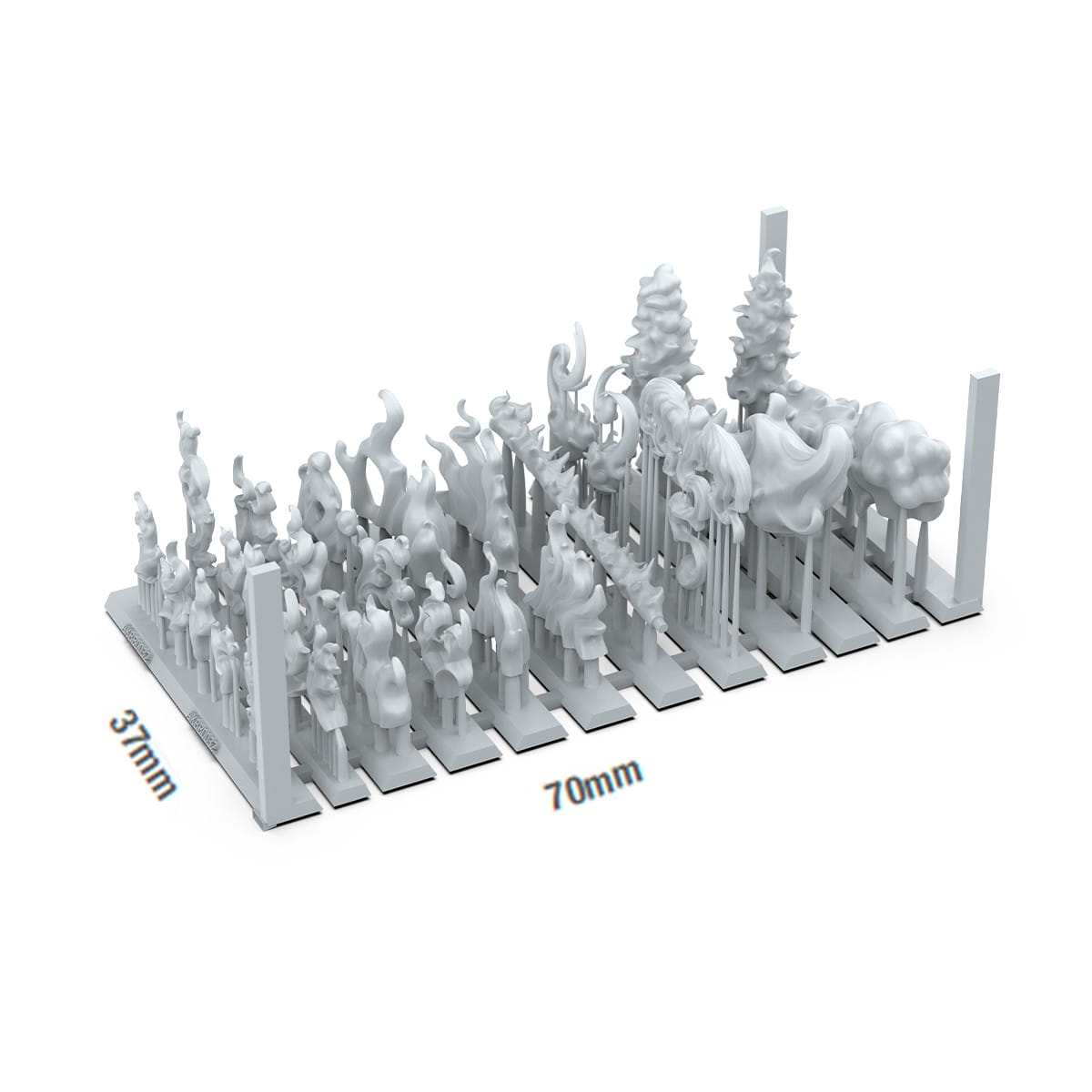 Zestaw 28 elementów przedstawiających efekty zaklęcia płomienia wykonanych z żywicy w technologii druku 3D, zaprojektowanych z myślą o nadaniu figurkom i scenom dynamicznego, magicznego charakteru. Detale oddają ruch i energię ognia, pozwalając stworzyć efekt zaklęcia w trakcie rzucania.