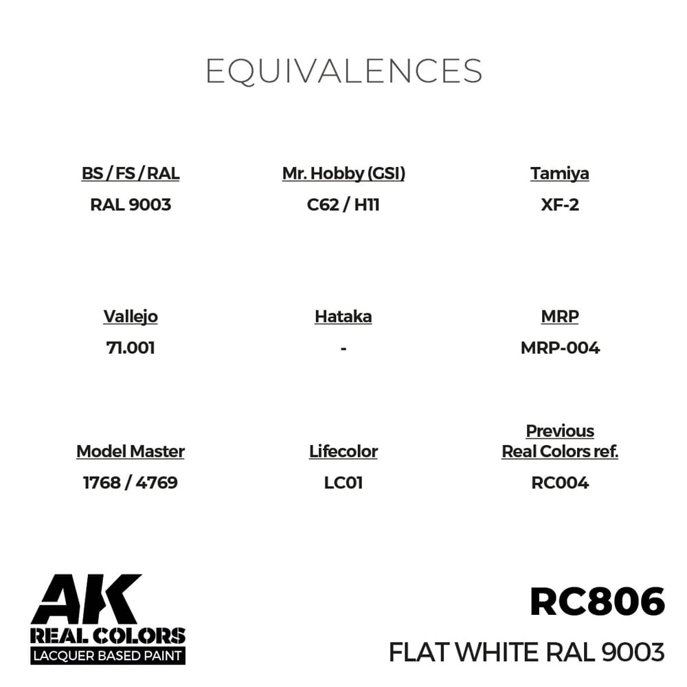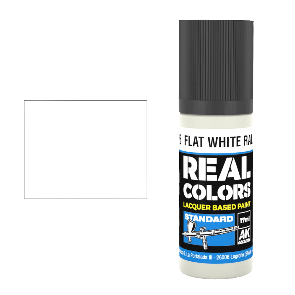 Farba akrylowa na bazie rozpuszczalników organicznych firmy AK Interactive seria Real Colors - kolor RC806 Flat White RAL 9003 - Biały matowy.