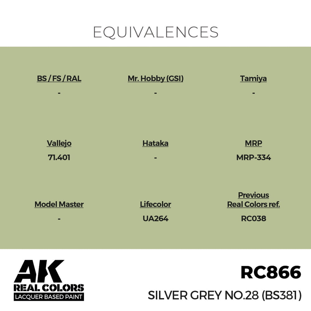 Farba akrylowa na bazie rozpuszczalników organicznych firmy AK Interactive seria Real Colors - kolor RC866 Silver Grey No.28 BS381 - Srebrno szary.