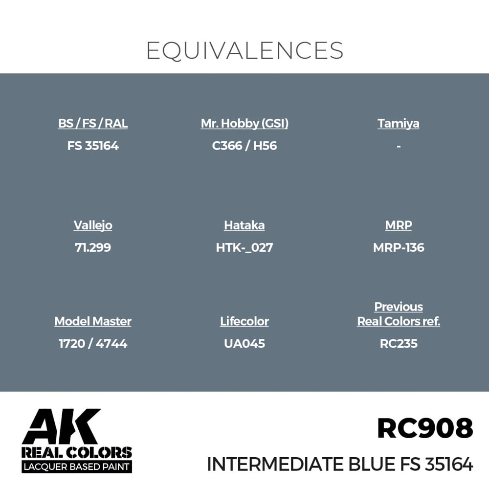 Farba akrylowa na bazie rozpuszczalników organicznych firmy AK Interactive seria Real Colors - kolor RC908 Intermediate Blue FS 35164 - Niebieski średni.