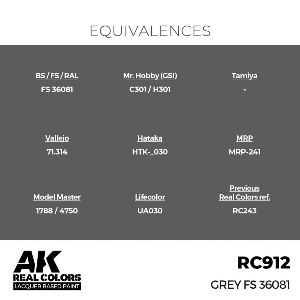 Farba akrylowa na bazie rozpuszczalników organicznych firmy AK Interactive seria Real Colors - kolor RC912 Grey FS 36081 - Szary.