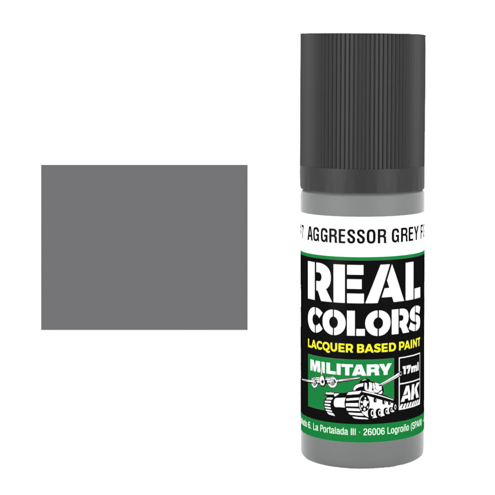 Farba akrylowa na bazie rozpuszczalników organicznych firmy AK Interactive seria Real Colors - kolor RC917 Aggressor Grey FS 36251 - Szary.