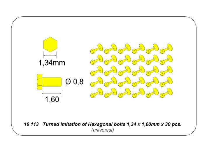 Aber 16113 - 1:16 Toczone Imitacje śrub 1,34 x 1,60 mm x 30 szt