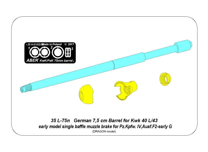 Aber 35L-075N - 1:35 Lufa 75mm armaty KwK40L/43 do Pz.Kpfw.IV Ausf. F2-wczesny G