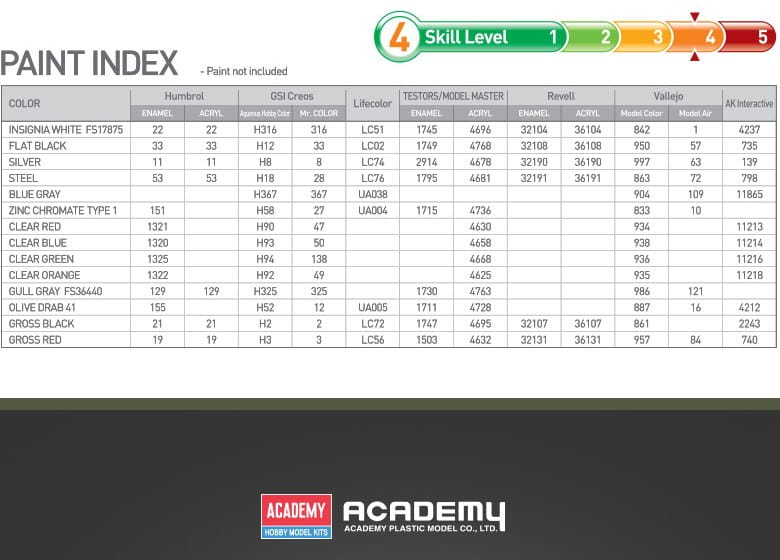 Produkują szeroką gamę modeli lotniczych, pancernych i okrętów w najpopularniejszych skalach. Coraz większą popularność w ich ofercie zyskują modele, które można składać bez użycia kleju, a także takie, które są produkowane z różnokolorowego plastiku i nie wymagają malowania po złożeniu. W typowych modelach redukcyjnych, które należy skleić i pomalować ilość części jest średnia, detale i pasowność bardzo dobre - modele Academy są dobrym wyborem dla każdego modelarza.