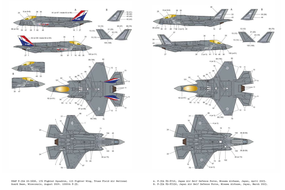 - Specjalne kalkomanie do maszyny oznaczonej jako „1000th F-35”