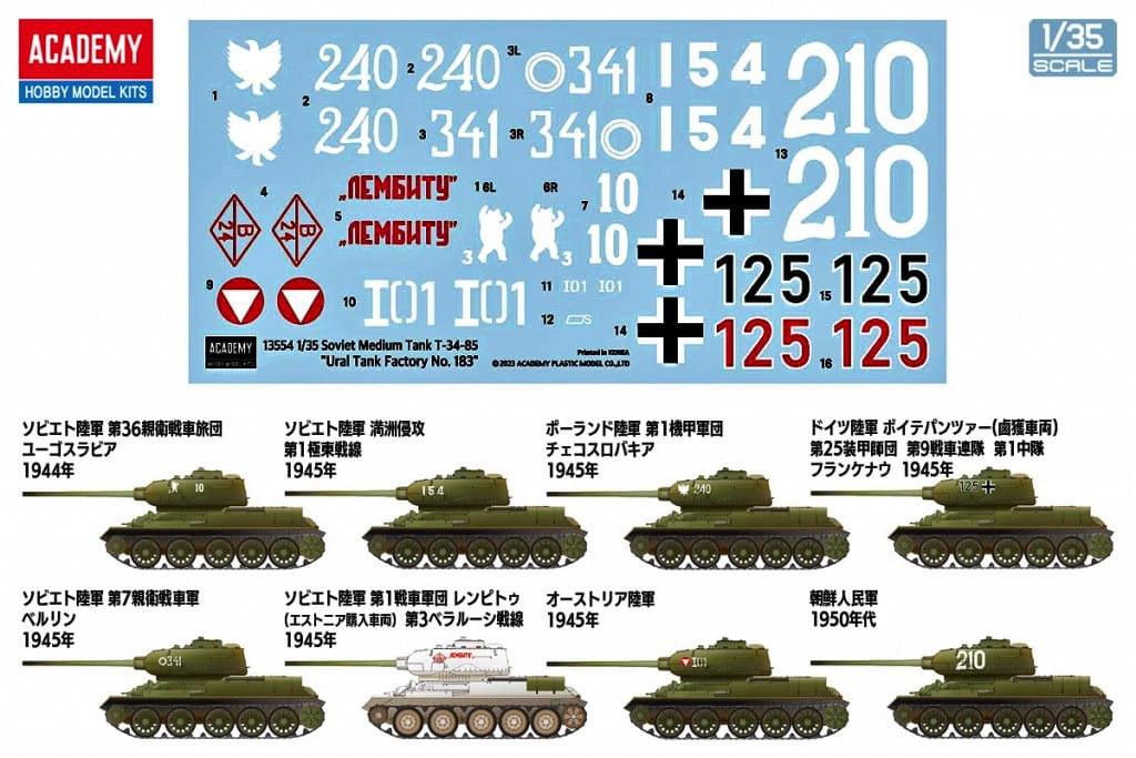 Academy 13554 - 1:35 Soviet Medium Tank T-34-85 Ural Tank Factory No.183