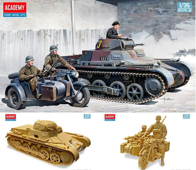 Academy 13556 - 1:35 German Panzer I Ausf.B & Motorcycle