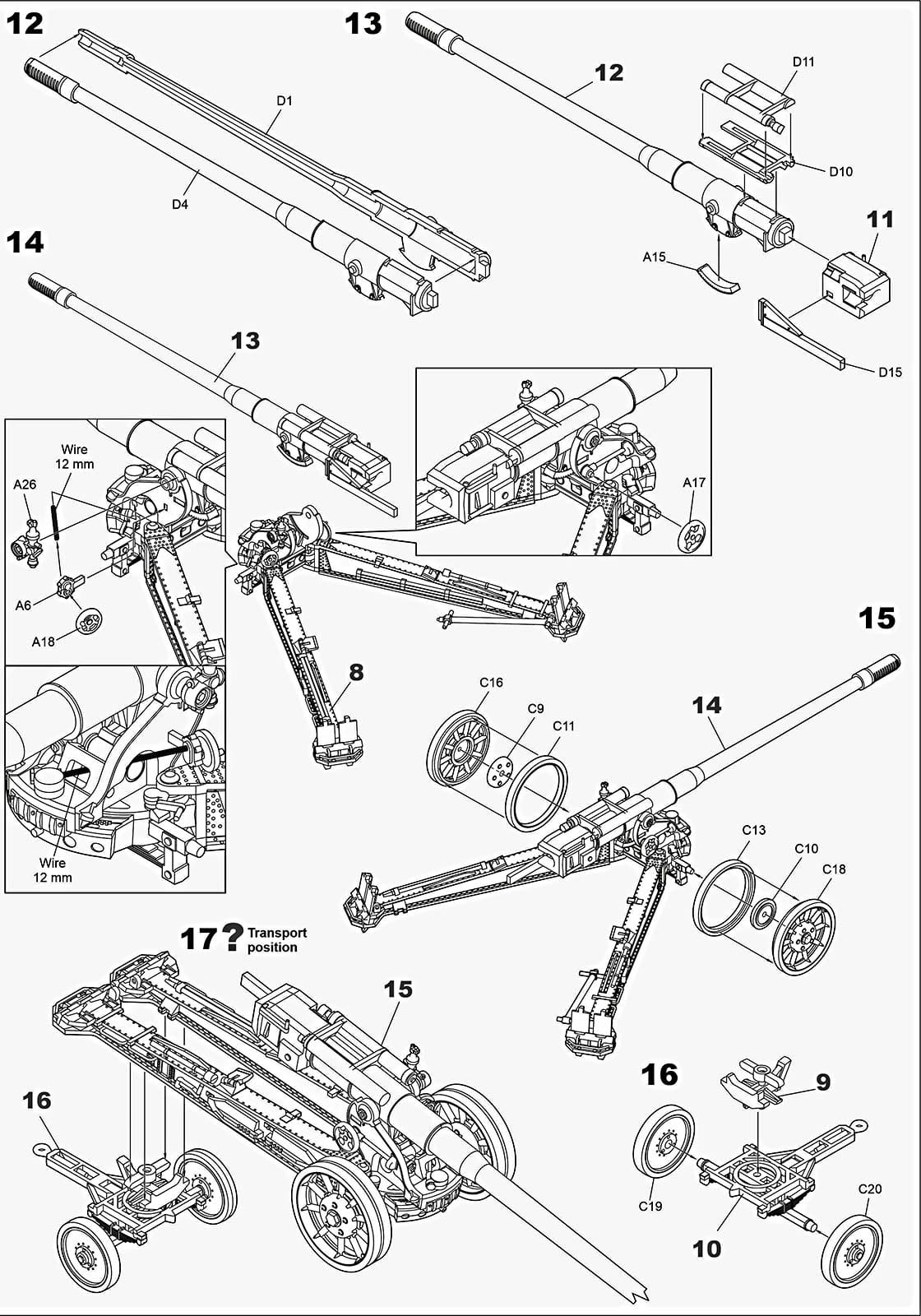 Model plastikowy do sklejania niemieckiej armaty przeciwpancernej 12,8 cm Kanone K-81/2.