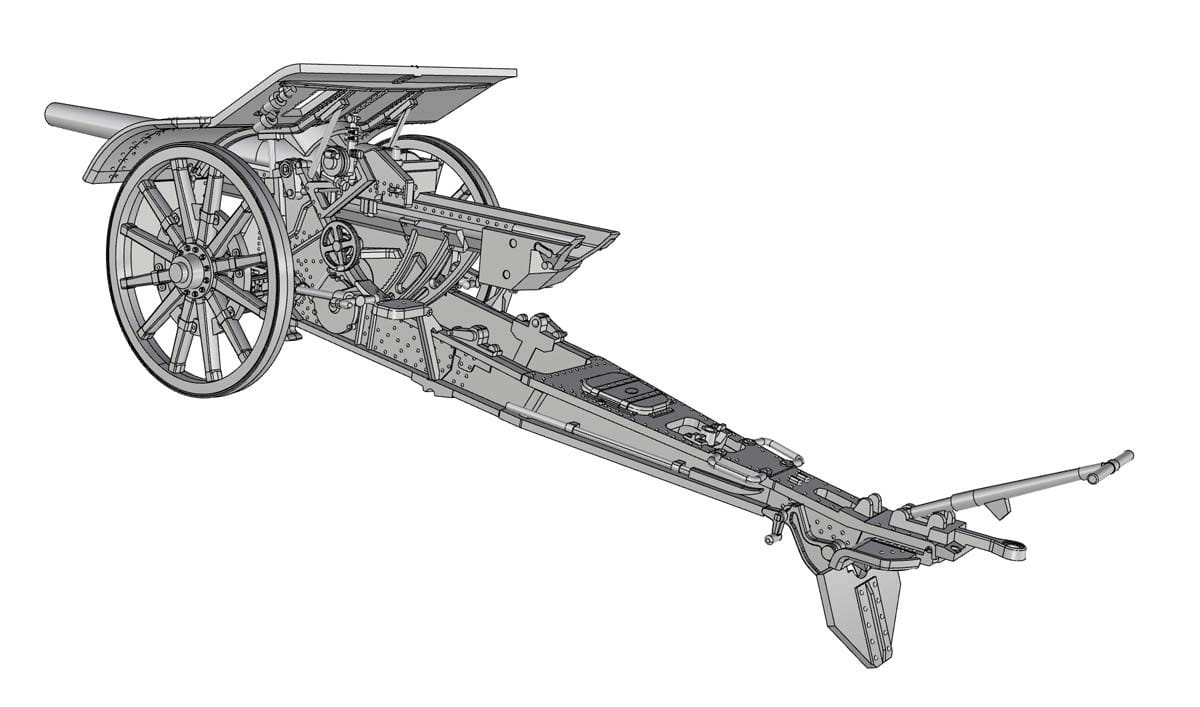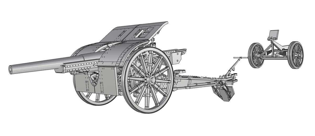 Model plastikowy do sklejania włoskiej armaty da105/28 z wózkiem do holowania.