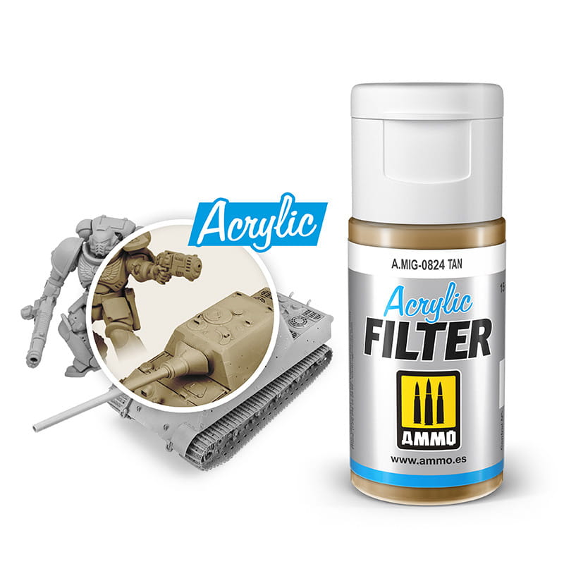 Filtr akrylowy Ammo of Mig kolor 0824 Tan - Blady brązowy.