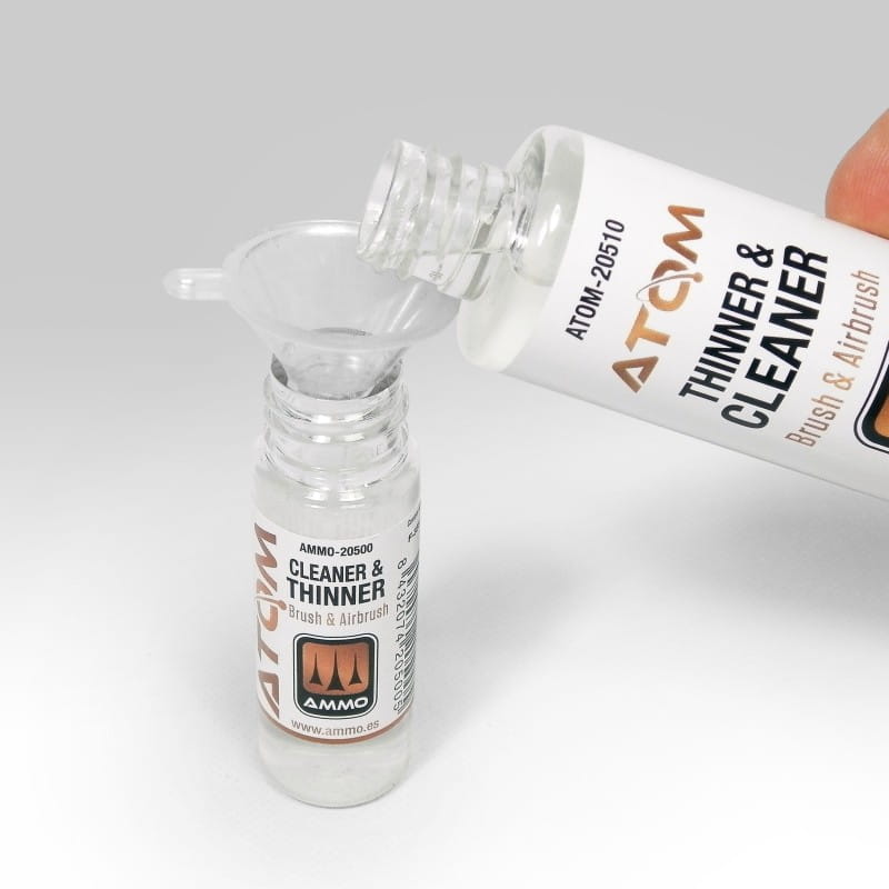 Ammo Mig 8267 to zestaw dwóch kompaktowych lejków wykonanych z wysokiej jakości tworzywa sztucznego, zaprojektowanych z myślą o wygodnym i czystym przelewaniu różnego rodzaju płynów. Idealnie sprawdzają się podczas pracy z farbami, klejami, rozcieńczalnikami oraz innymi preparatami modelarskimi.