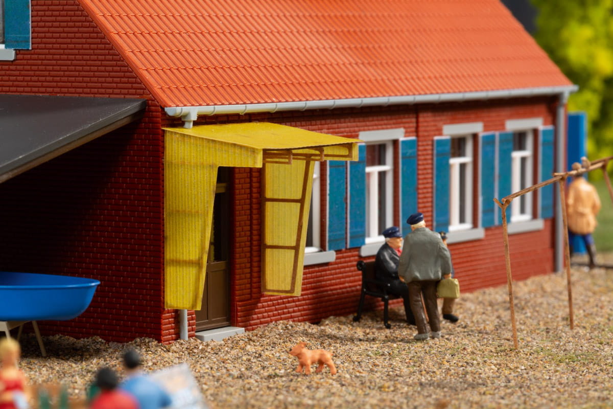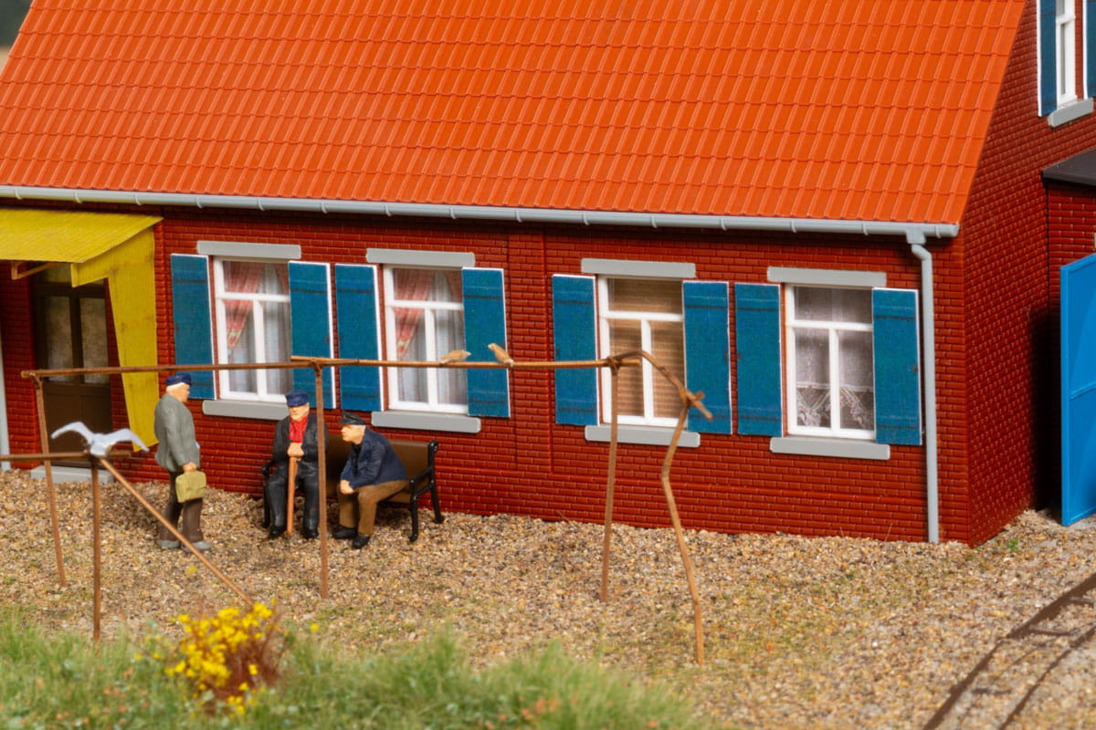 Jednopiętrowy budynek mieszkalny wykonany z cegły klinkierowej w skali rzeczywistej i z drobno grawerowanym dachem siodłowym wzorowanym na stylu północnoniemieckim. Daszek chroniący przed warunkami atmosferycznymi przed drzwiami wejściowymi i okiennice nadają modelowi typowego uroku. Przybudówka którą można dowolnie ustawiać, może służyć jako schowek dla różnych narzędzi. Szczególnie dobrze pasuje tematycznie do zestawów 11 475 Sklep rolniczy i 11 476 Przystań z pochylnią.