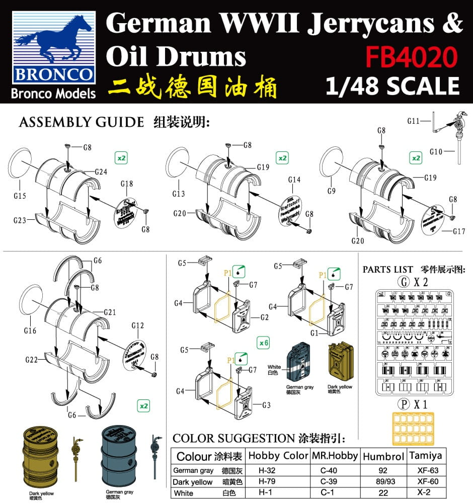 BRONCO FB 4020 - 1:48 German WWII Jerrycans & Oil Drums