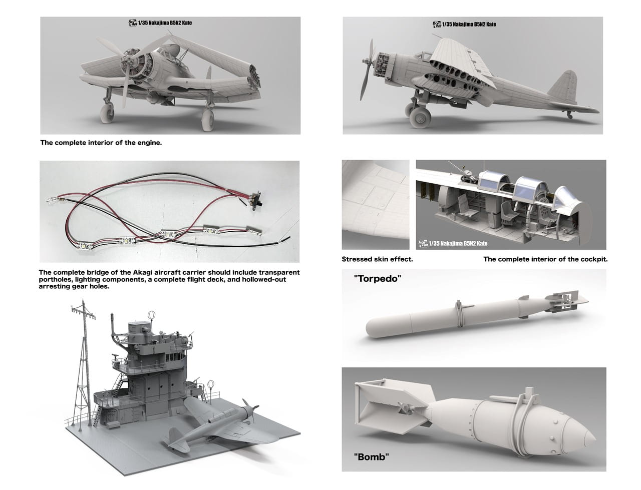 Model plastikowy do sklejania fragmentu pokładu lotniskowca Akagi wraz z nadbudówkami oraz samolotu i samolotu pokładowego Nakajima B5N2 Kate w konfiguracji z okresu ataku na Pearl Harbor w 1941 roku.