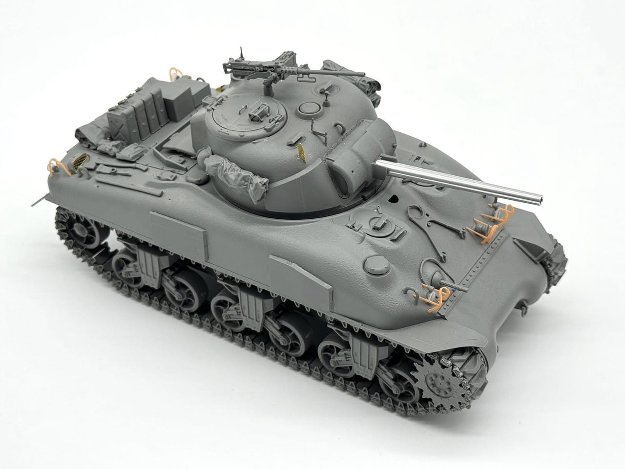 Model został opracowany z dużą precyzją i dbałością o detale. Zawiera realistycznie odwzorowany odlewany kadłub, dokładnie opracowane detale wieży i uzbrojenia, a także elementy fototrawione dla drobnych części, takich jak uchwyty, osłony czy mocowania wyposażenia. Zawieszenie HVSS i gąsienice z indywidualnych ogniw zapewniają wysoki poziom realizmu. W zestawie znajdują się opcjonalne elementy i bogate wyposażenie zewnętrzne – skrzynki, kanistry, torby i zapasowe ogniwa gąsienic.