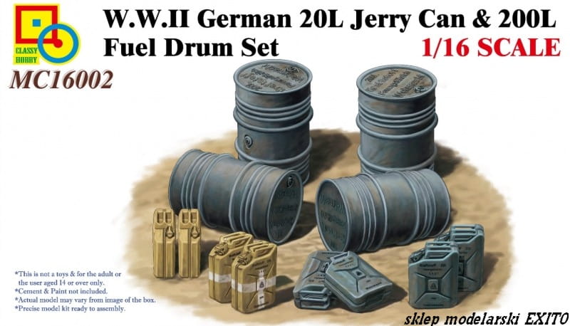 CLASSY HOBBY 16002 - 1:16 WWII German 20L Jerry Can & 200L Fuel Drum Set