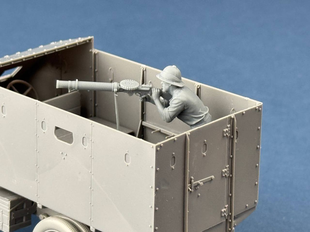 Elementy żywiczne wymagają delikatnego oczyszczenia z kostek wlewowych i ewentualnego dopasowania przed sklejeniem. Do montażu zaleca się klej cyjanoakrylowy (CA). Po zagruntowaniu model można malować farbami akrylowymi lub olejnymi. Figurka stanowi idealne uzupełnienie modeli samochodów pancernych Rolls-Royce Armoured Car z tej samej serii.