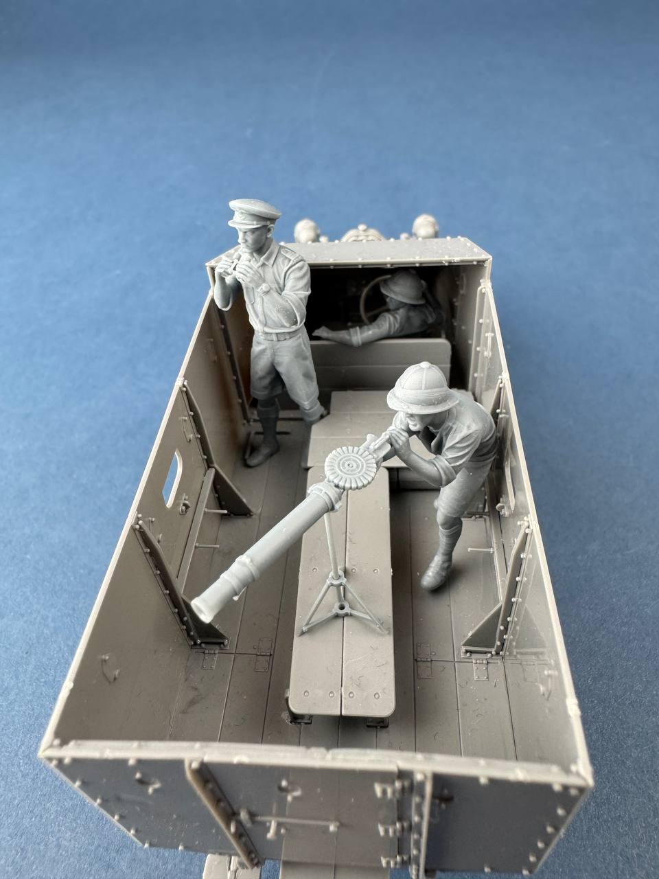 - Zawartość: figurki załogi samochodu pancernego RAF (I wojna światowa)