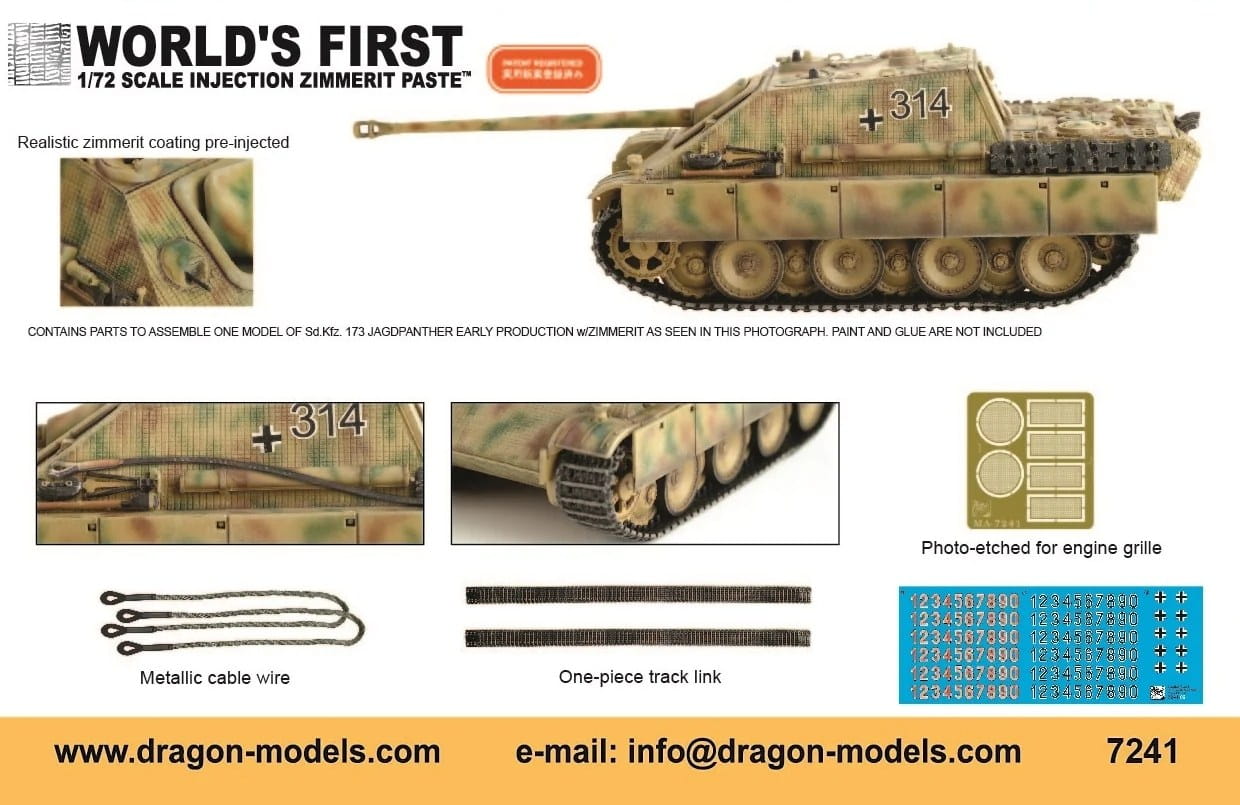 DRAGON 7241 - 1:72 Sd.Kfz.173 Jagdpanther Early Production w/ Zimmerit