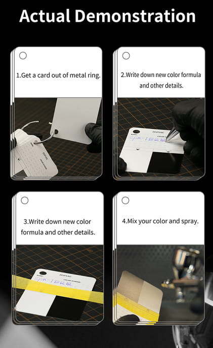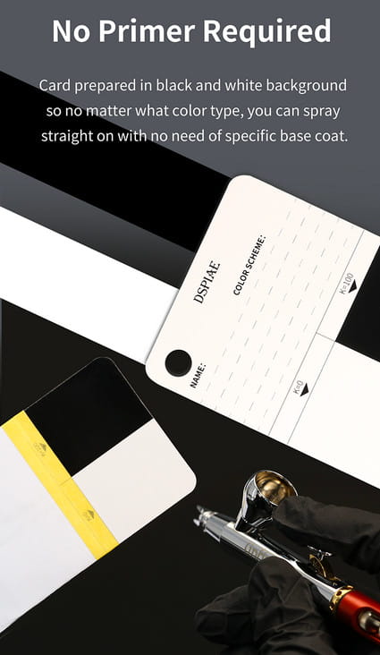 Kompaktowy zestaw kard do testowania krycia i finalnego odcienia farby na danym podkładzie.
