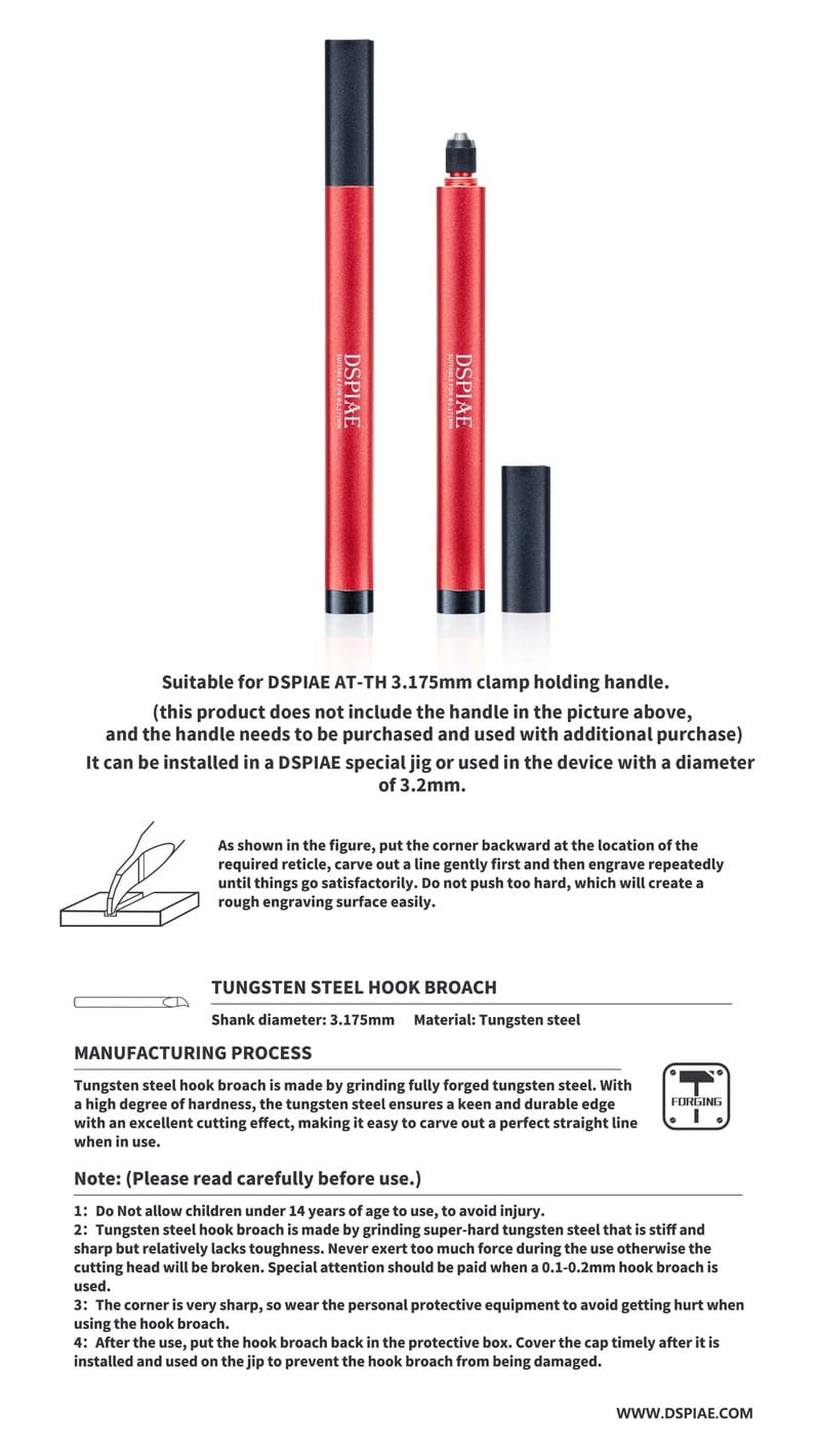 Wysokiej jakości rysik do wykonywania wgłębnych linii podziału blach na powierzchni modeli plastikowych, również odtwarzania zatartych lub zaszpachlowanych linii. Rysik można zamocować w dedykowanym uchwycie DSPIAE AT-TH co ułatwia pracę. Szeroka oferta rozmiarów rysików DSPIAE umożliwia odzwzorowywanie linii o róznej szerokości.