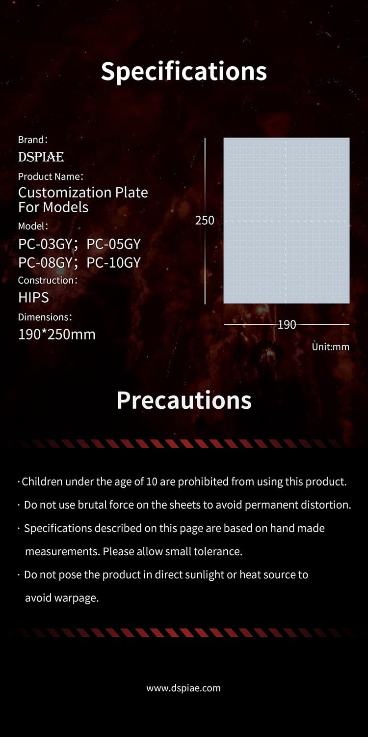 DSPIAE PC-10GY - Arkusze polistyrenu z nadrukiem 1.0mm 250x190mm 3 szt