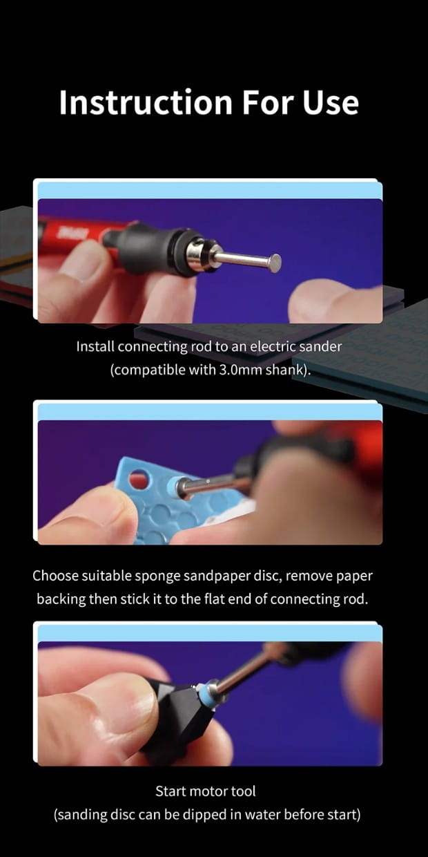 Samoprzylepne krążki do szlifowania posiadają mocny klej, dzięki któremu nie odpadają od sztyftu podczas szlifowania. Wysokiej jakości papier ścierny zapewnia szybkie szlifowanie bez uszkadzania powierzchni, którą obrabiamy. Można używać na sucho i na mokro. Pasują do sztyftów SS-C01R i najlepiej używać ich w mini szlifierce ES-P. Przy szlifowaniu plastiku najlepiej używać jak najniższych obrotów, żeby nie stopić obrabianego materiału. W zestawie jeden sztyft mocujący.