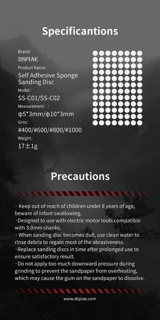 DSPIAE SS-C01 - Zestaw 5 mm samoprzylepnych krążków ściernych 400, 600, 800, 1000