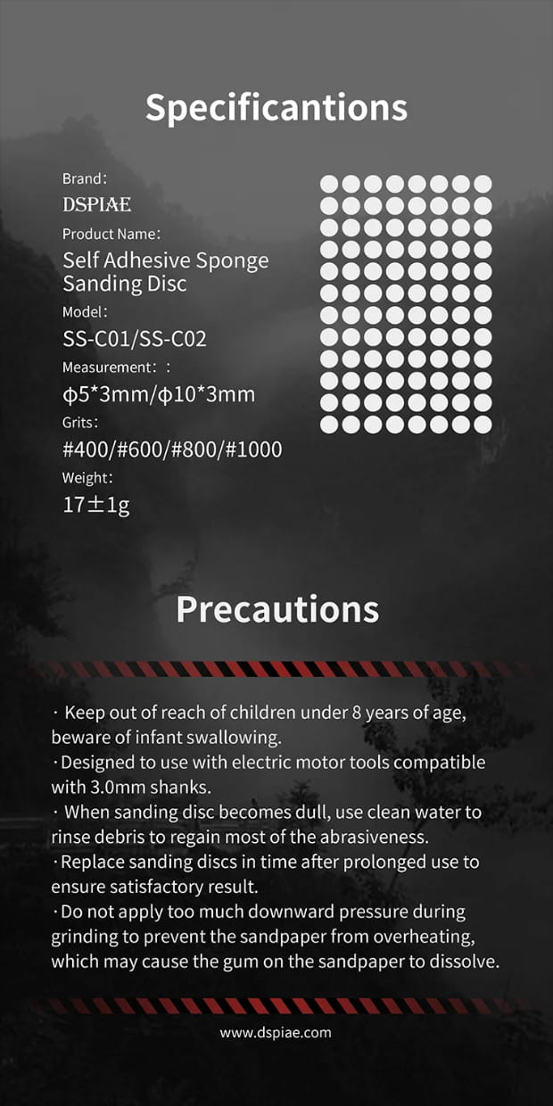 DSPIAE SS-C02-800 - arkusz samoprzylepnych krążków ściernych o średnicy 10mm, gradacja 800