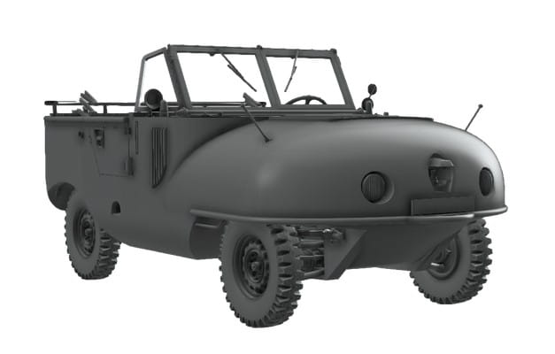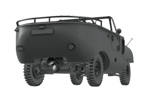 Model plastikowy do sklejania niemieckiego samochodu amfibii Schwimmwagen Trippel SG 6/38.