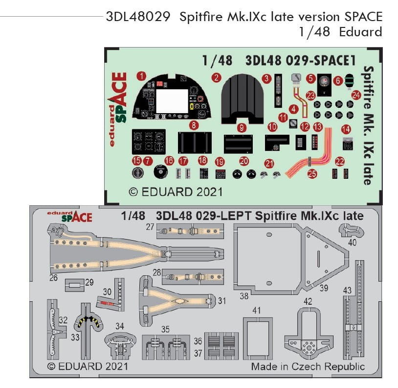 EDUARD 3DL48029 - 1:48 Spitfire Mk.IXc late version - Space 3D Decals + PE