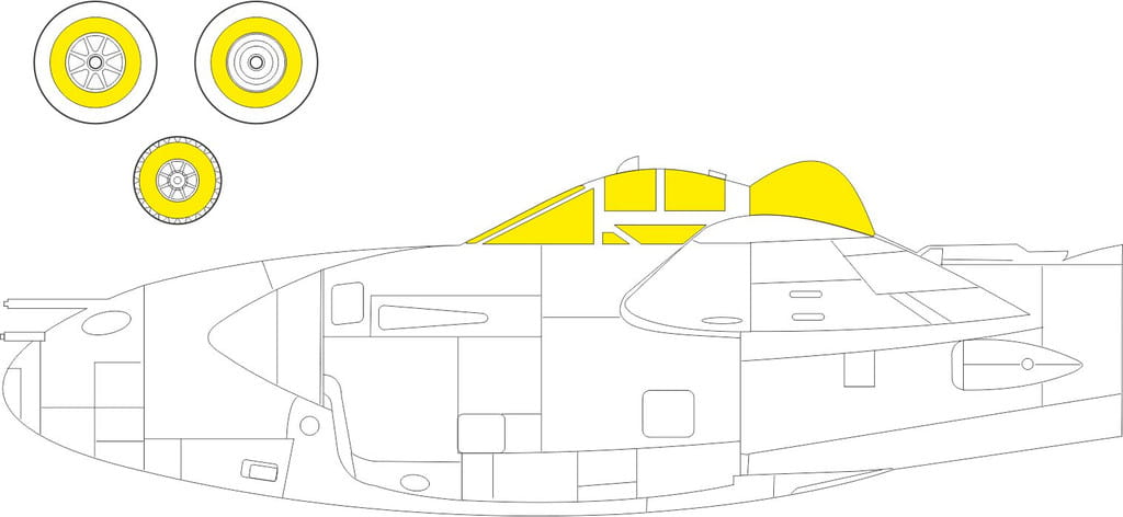 Maski do malowania owiewki kabiny w modelu samolotu P-38M Lightning.